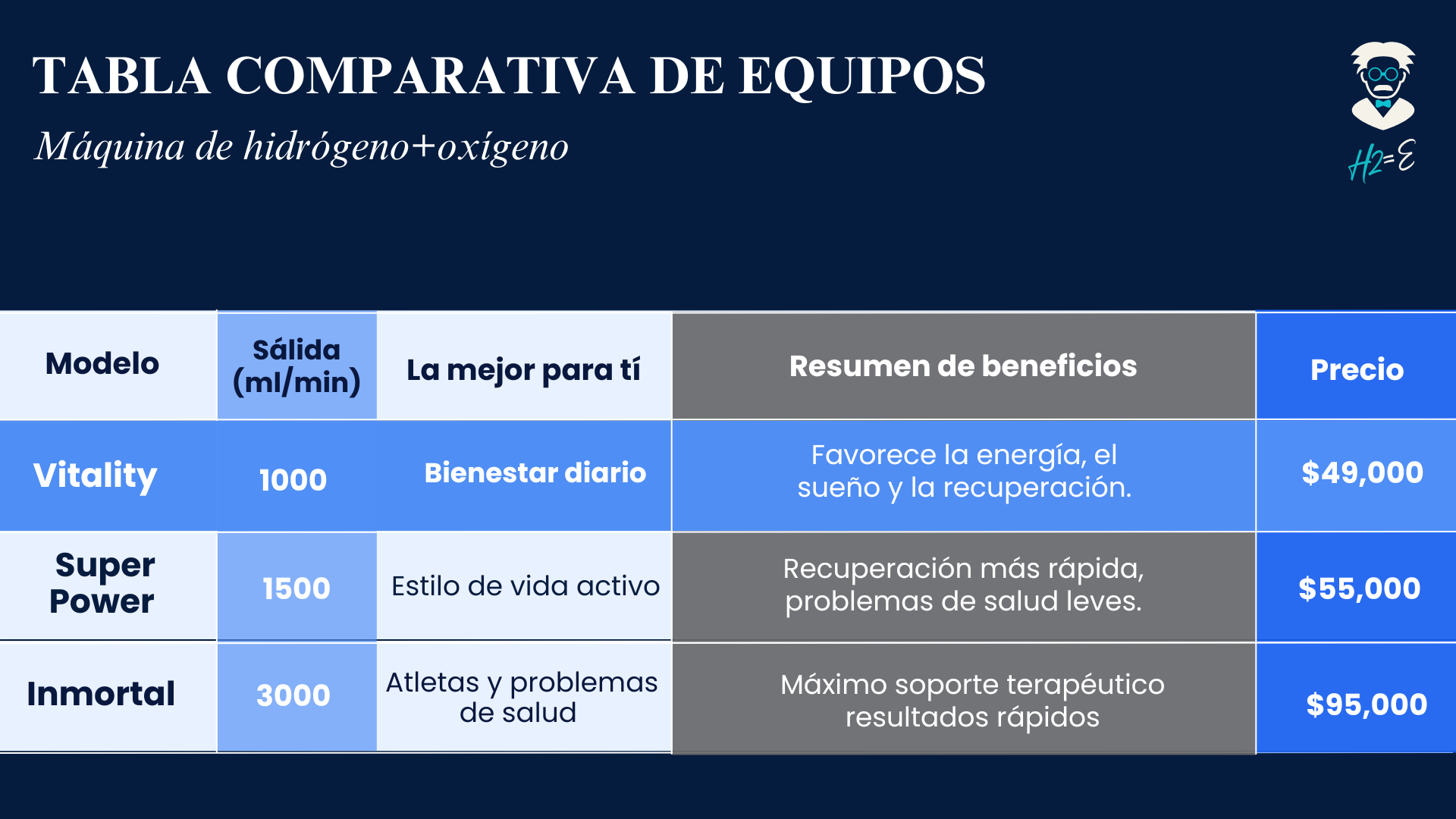 Es el modelo de entrada dentro de nuestra gama, ideal para quienes desean iniciar su experiencia con la terapia de hidrógeno o buscan un equipo confiable para su bienestar diario.